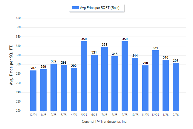 February 2026 Average Sold Price per Square Footage was Depreciating**