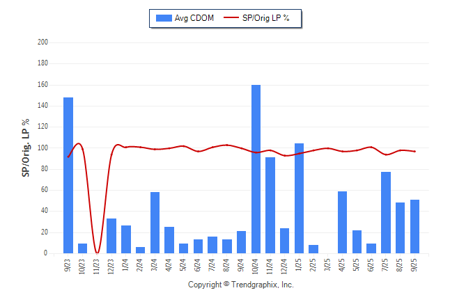 September 2025 Average Continuous Days on Market trend Remains Steady and Sold/Original List Price Ratio Remains Steady**