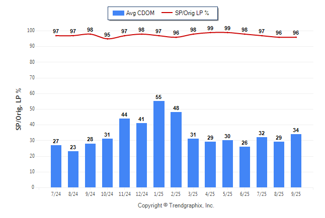 September 2025 Average Continuous Days on Market trend was Rising and Sold/Original List Price Ratio was Falling**