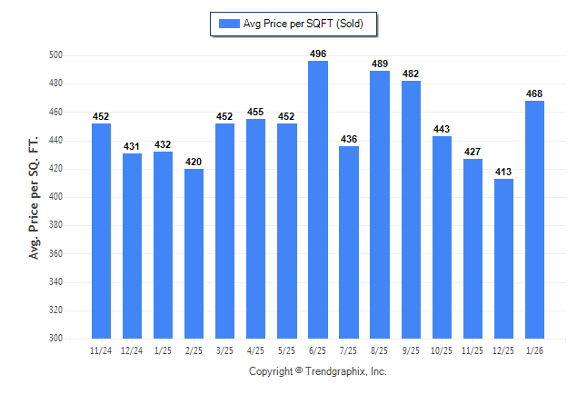 January 2026 Average Sold Price per Square Footage was Neutral**