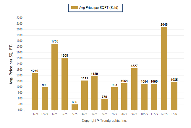 January 2026 Average Sold Price per Square Footage was Neutral**