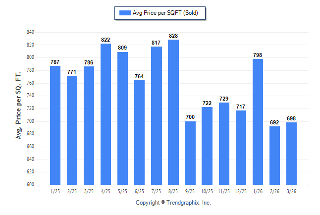 March 2026 Average Sold Price per Square Footage was Neutral**