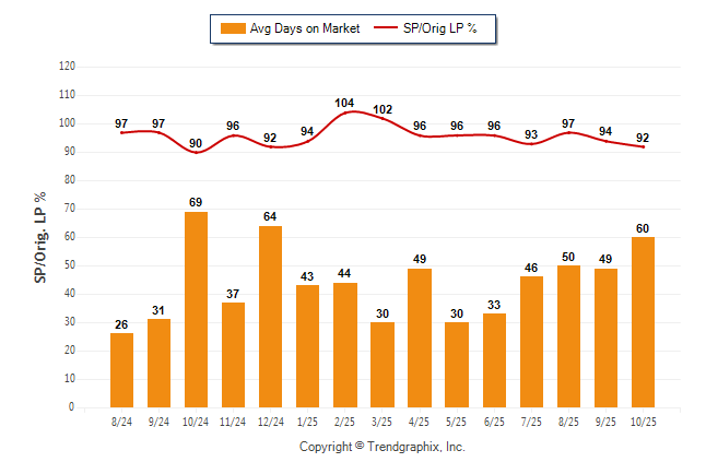 October 2025 Average Days on Market trend was Rising and Sold/Original List Price Ratio was Falling**