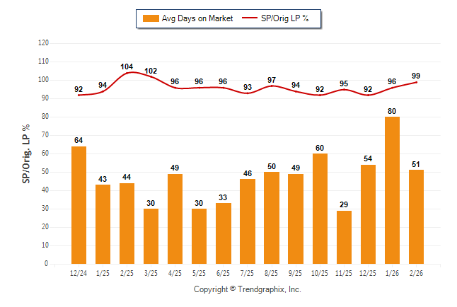 February 2026 Average Days on Market trend Remains Steady and Sold/Original List Price Ratio was Rising**