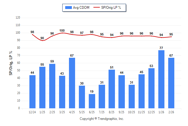 February 2026 Average Continuous Days on Market trend Remains Steady and Sold/Original List Price Ratio Remains Steady**