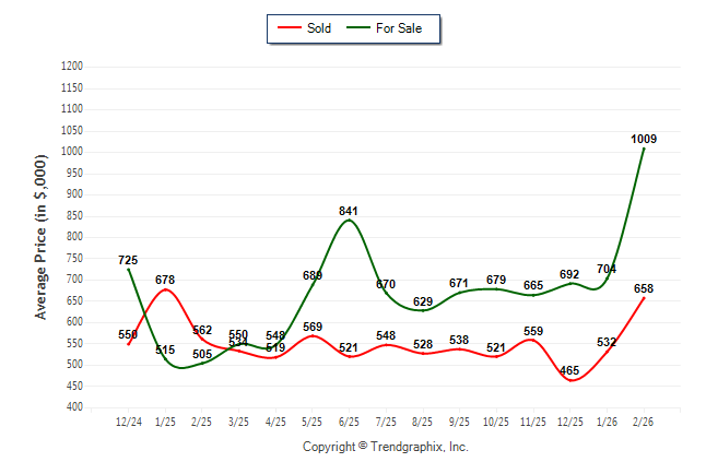 February 2026 Average For Sale Price was Appreciating and Average Sold Price was Appreciating**
