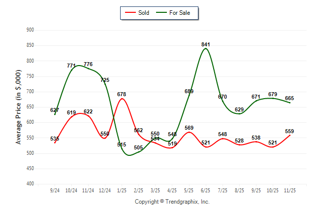 November 2025 Average For Sale Price was Depreciating and Average Sold Price was Appreciating**