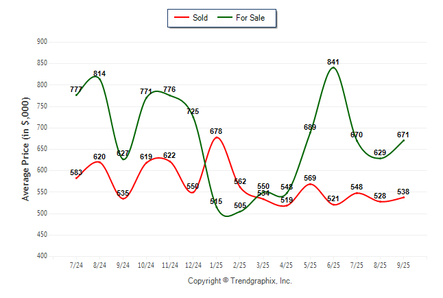September 2025 Average For Sale Price was Neutral and Average Sold Price was Neutral**