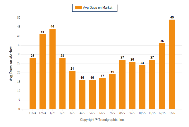 January 2026 Average Days on Market trend was Rising**