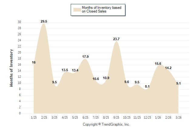 Curnt vs. Same Month 1 Yr Ago: Months of Inventory (Closed Sales)
