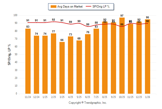 January 2026 Average Days on Market trend Remains Steady and Sold/Original List Price Ratio was Rising**