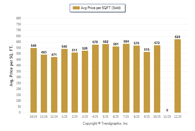 December 2025 Average Sold Price per Square Footage was Appreciating**