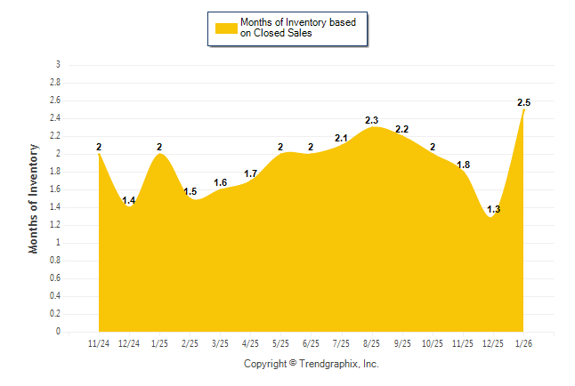 Curnt vs. Same Month 1 Yr Ago: Months of Inventory (Closed Sales)