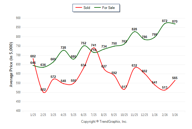 March 2026 Average For Sale Price was Neutral and Average Sold Price was Neutral**