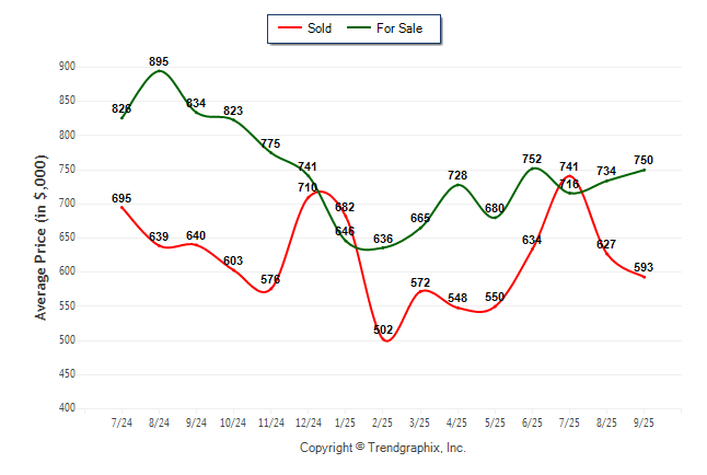 September 2025 Average For Sale Price was Appreciating and Average Sold Price was Neutral**