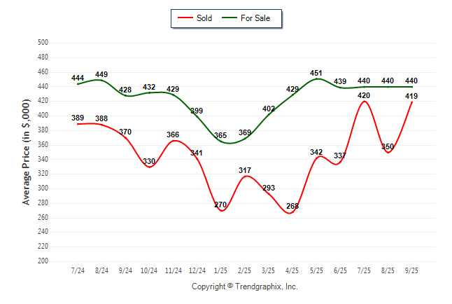 September 2025 Average For Sale Price was Neutral and Average Sold Price was Neutral**