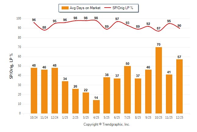 December 2025 Average Days on Market trend Remains Steady and Sold/Original List Price Ratio Remains Steady**