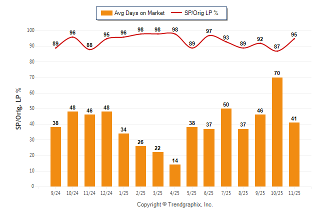 November 2025 Average Days on Market trend Remains Steady and Sold/Original List Price Ratio Remains Steady**