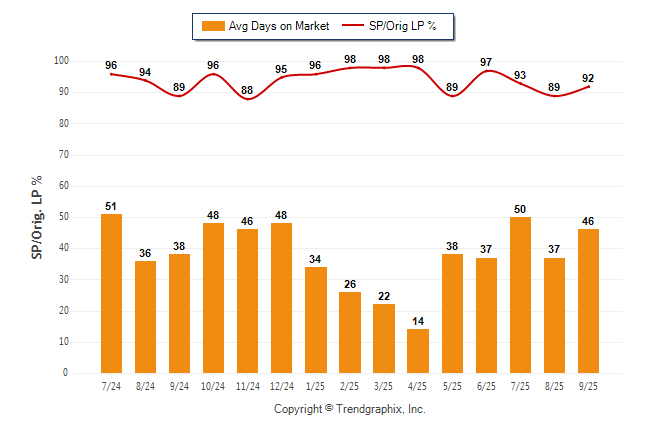 September 2025 Average Days on Market trend Remains Steady and Sold/Original List Price Ratio Remains Steady**