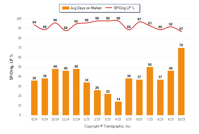 October 2025 Average Days on Market trend was Rising and Sold/Original List Price Ratio was Falling**