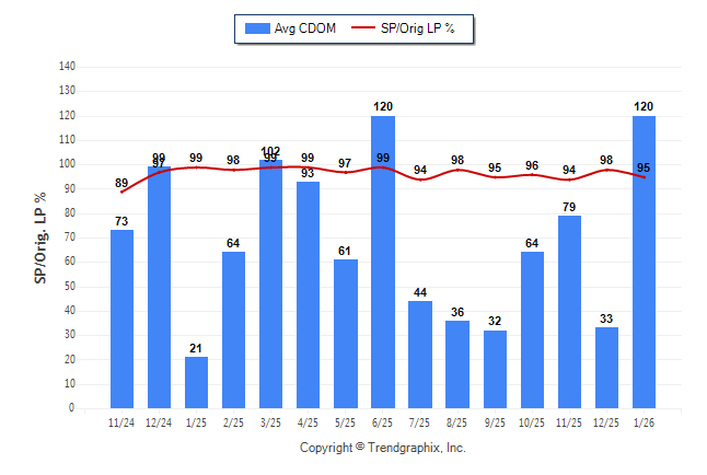 January 2026 Average Continuous Days on Market trend was Rising and Sold/Original List Price Ratio Remains Steady**