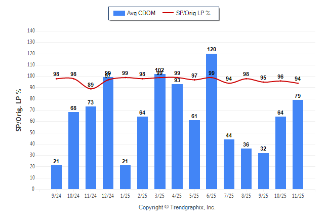 November 2025 Average Continuous Days on Market trend Remains Steady and Sold/Original List Price Ratio was Falling**