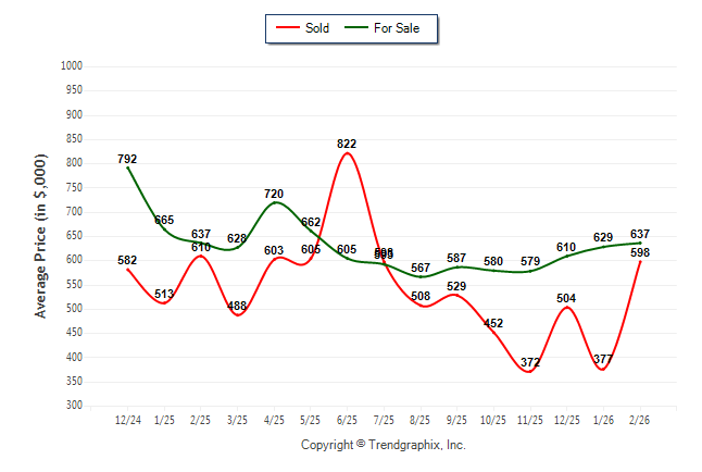 February 2026 Average For Sale Price was Appreciating and Average Sold Price was Appreciating**