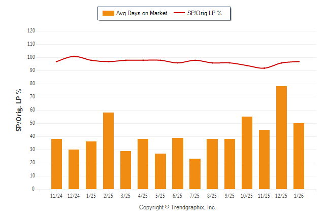 January 2026 Average Days on Market trend Remains Steady and Sold/Original List Price Ratio Remains Steady**