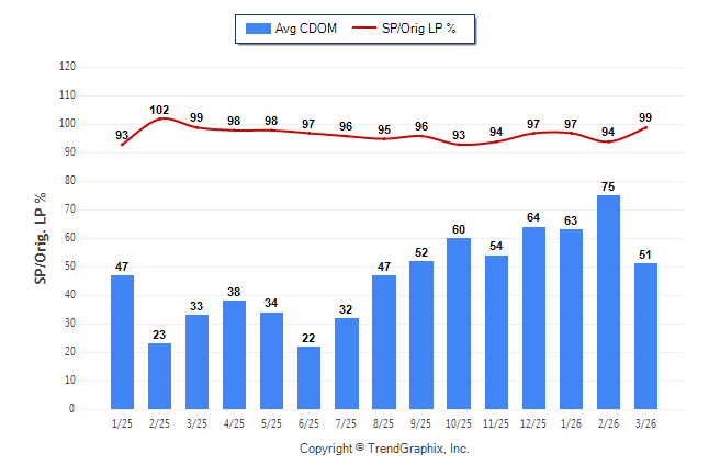 March 2026 Average Continuous Days on Market trend Remains Steady and Sold/Original List Price Ratio was Rising**