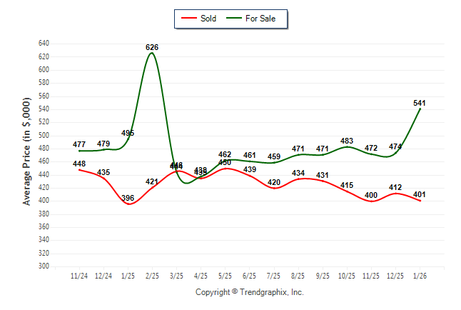 January 2026 Average For Sale Price was Appreciating and Average Sold Price was Neutral**