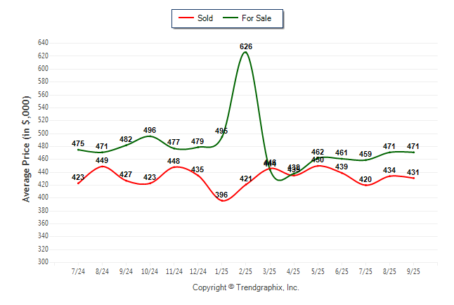 September 2025 Average For Sale Price was Appreciating and Average Sold Price was Neutral**