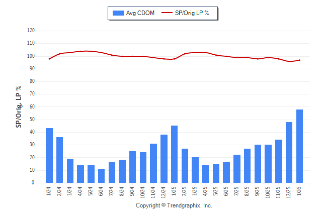 January 2026 Average Continuous Days on Market trend was Rising and Sold/Original List Price Ratio Remains Steady**