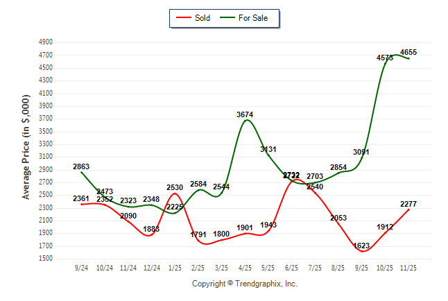 November 2025 Average For Sale Price was Appreciating and Average Sold Price was Neutral**
