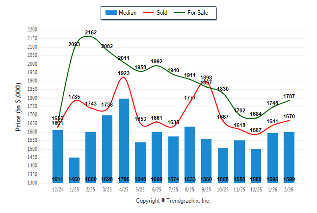 February 2026 Median Price was Appreciating, Avg. For Sale Price was Neutral, and Avg. Sold Price was Neutral**