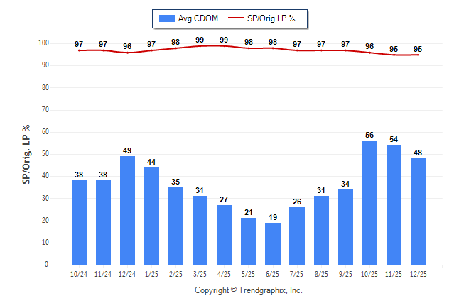 December 2025 Average Continuous Days on Market trend Remains Steady and Sold/Original List Price Ratio was Falling**