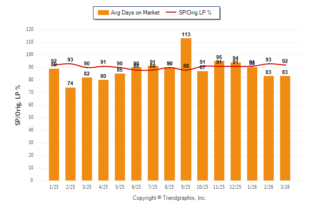 March 2026 Average Days on Market trend was Falling and Sold/Original List Price Ratio Remains Steady**