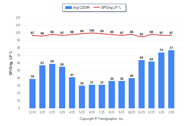 February 2026 Average Continuous Days on Market trend was Rising and Sold/Original List Price Ratio Remains Steady**