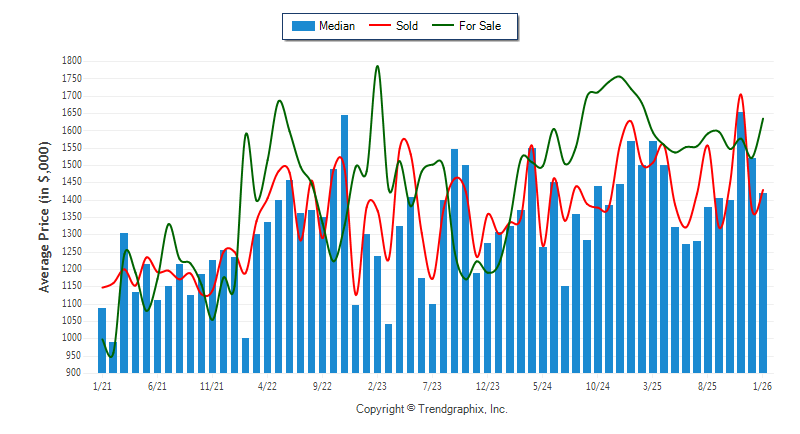 January 2026 Median Price was Neutral, Avg. For Sale Price was Appreciating, and Avg. Sold Price was Neutral**