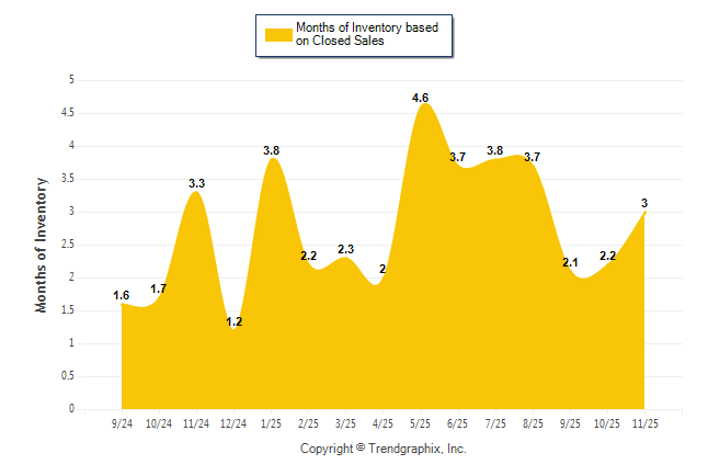 Curnt vs. Same Month 1 Yr Ago: Months of Inventory (Closed Sales)