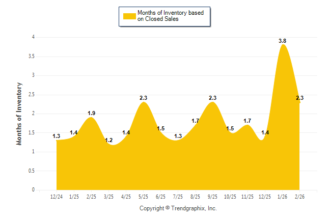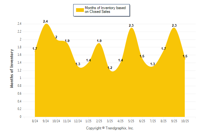 Curnt vs. Same Month 1 Yr Ago: Months of Inventory (Closed Sales)