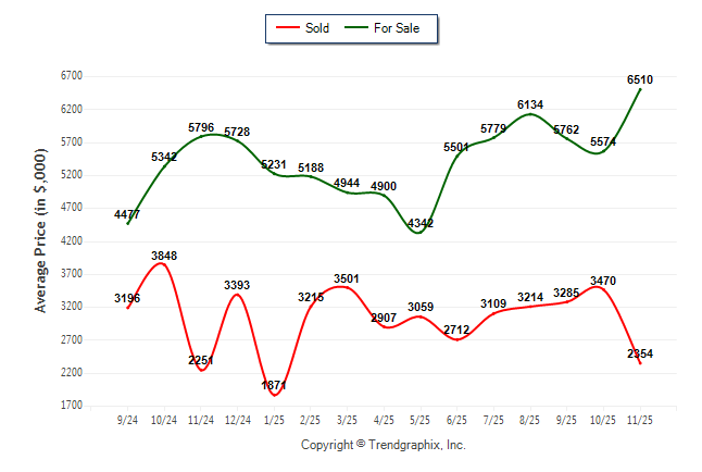 November 2025 Average For Sale Price was Appreciating and Average Sold Price was Neutral**
