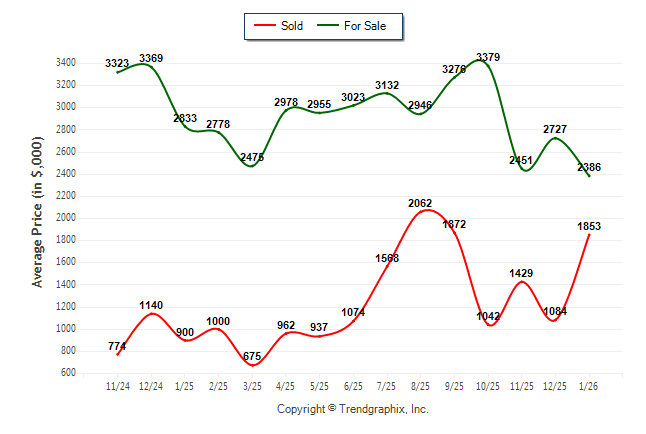 January 2026 Average For Sale Price was Depreciating and Average Sold Price was Neutral**