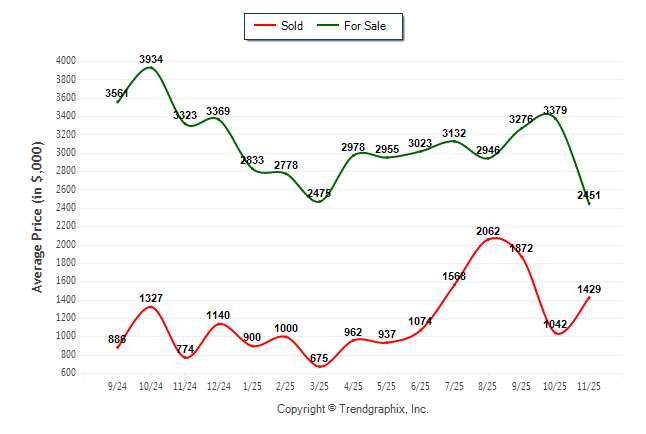 November 2025 Average For Sale Price was Neutral and Average Sold Price was Neutral**