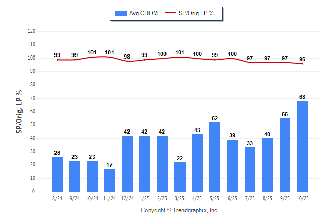 October 2025 Average Continuous Days on Market trend was Rising and Sold/Original List Price Ratio was Falling**