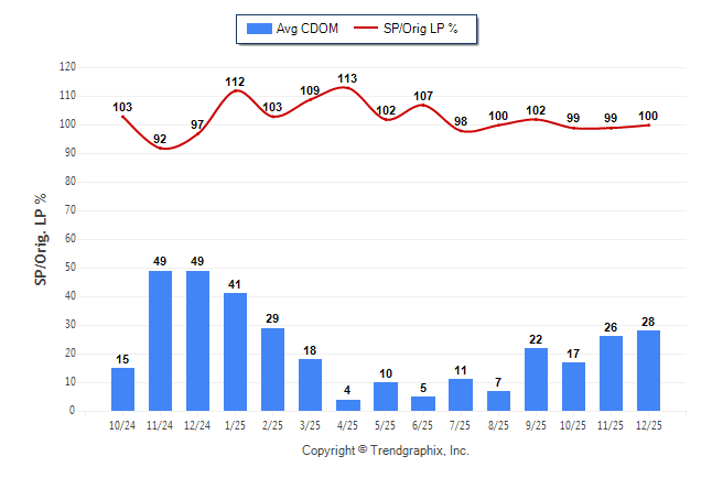 December 2025 Average Continuous Days on Market trend was Rising and Sold/Original List Price Ratio Remains Steady**