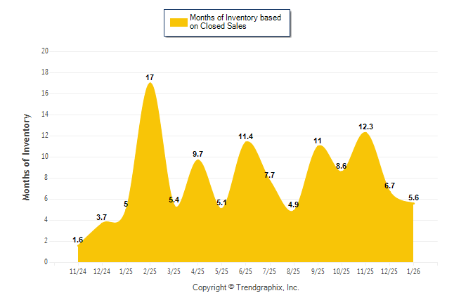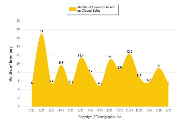 Curnt vs. Same Month 1 Yr Ago: Months of Inventory (Closed Sales)