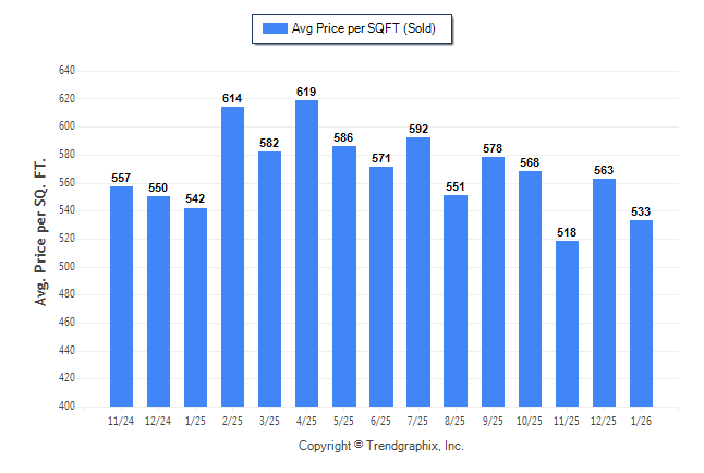 January 2026 Average Sold Price per Square Footage was Neutral**