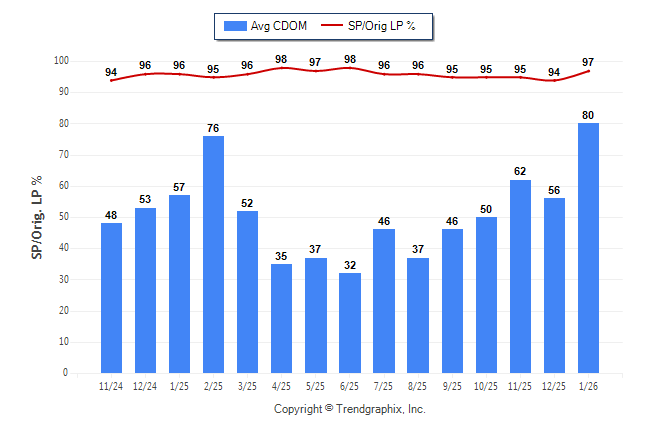 January 2026 Average Continuous Days on Market trend was Rising and Sold/Original List Price Ratio Remains Steady**