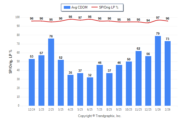 February 2026 Average Continuous Days on Market trend Remains Steady and Sold/Original List Price Ratio Remains Steady**