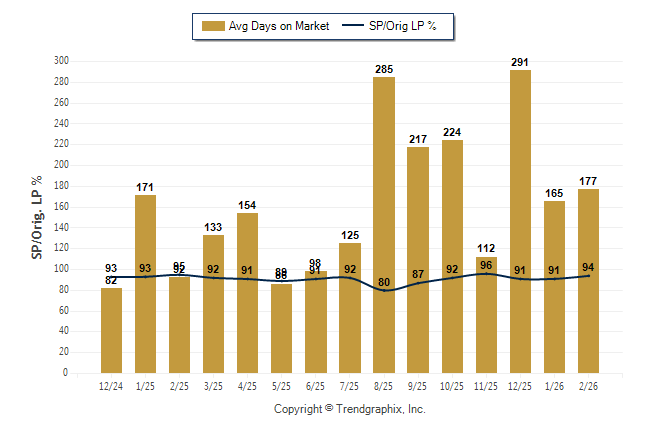 February 2026 Average Days on Market trend Remains Steady and Sold/Original List Price Ratio Remains Steady**